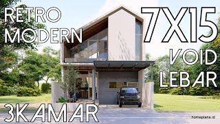 - Desain Rumah Lahan 7x15 konsep Retro Modern [kode 194]