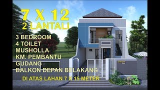 - Desain Rumah Minimalis 7x12 4 kamar - Lahan 7x15