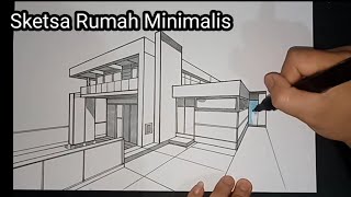 - Cara Membuat Gambar Rumah Minimalis dengan Perspektif 2 titik hilang ?|| Gambar Teknik