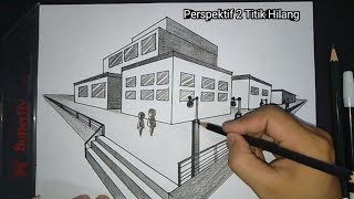 Menggambar gedung dengan pandangan Perspektif 2titik hilang teknik menggambar gedung atau bangunan menggundakan perspektif 2 titik hilang belajar ...