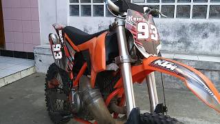 Review Satria 2 Tak Supermoto body ktm 85 di rubah menjadi Satria 2 tak supermoto body ktm 85. Satria 2 tak trail body ktm 85 ini di sokong mesin 120cc 2 tak.